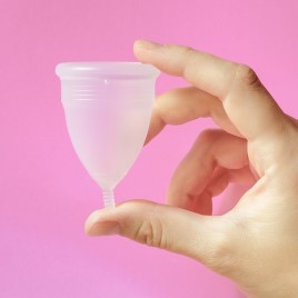 This flexible funnel- shaped menstrual cup made of silicone is an eco-friendly alternative to tampons.